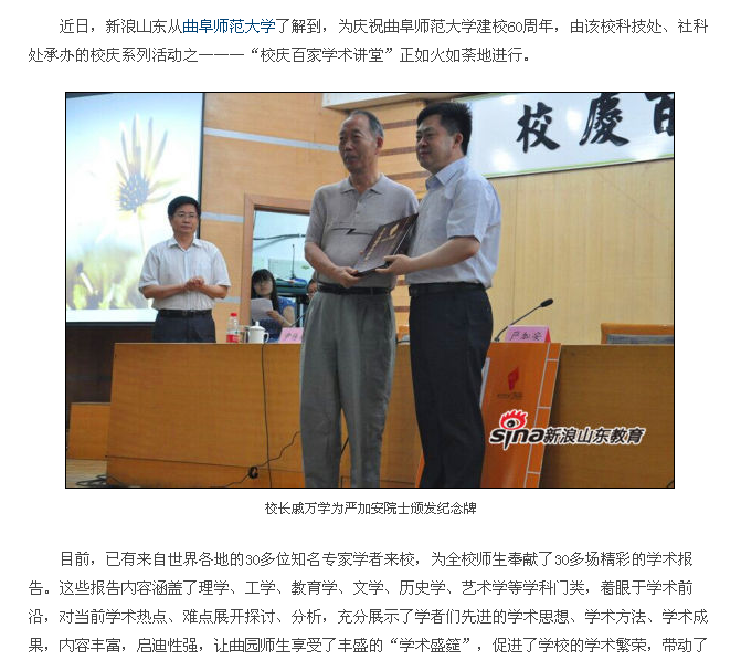 新浪网报道链接:米兰官方网站举行“校庆百家学术讲堂” 促进曲园学术繁荣