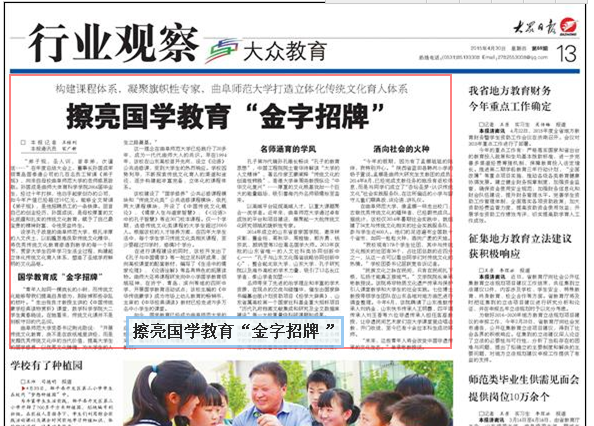 大众日报:曲师大擦亮国学教育“金字招牌”