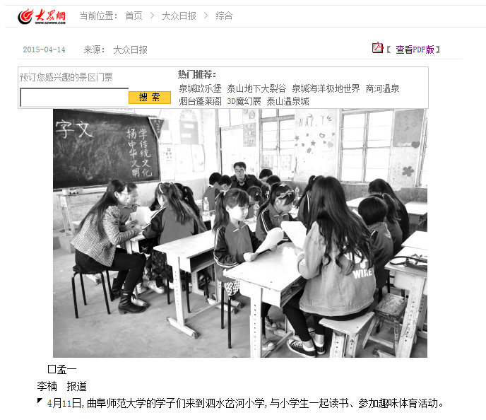 大众日报:“大手牵小手”校地联合助推教育扶贫