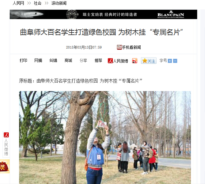 人民网:曲阜师大百名学生打造绿色校园 为树木挂“专属名片”