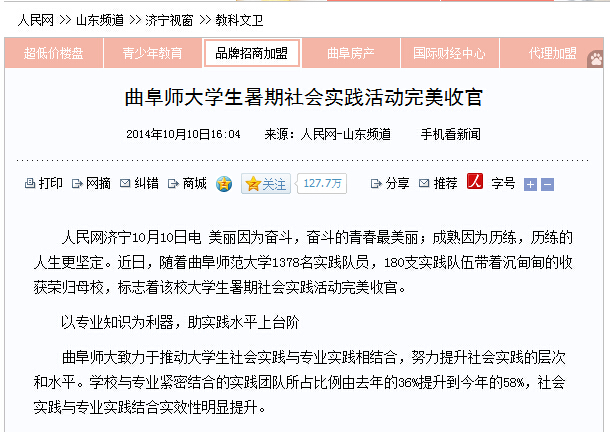 人民网:曲阜师大学生暑期社会实践活动完美收官