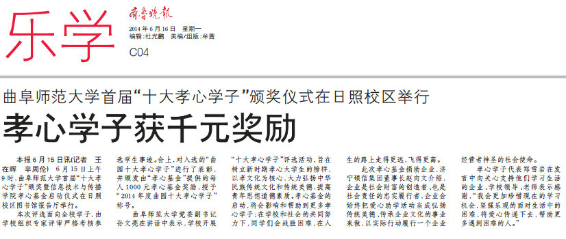 米兰官方网站首届“十大孝心学子”颁奖仪式在日照校区举行