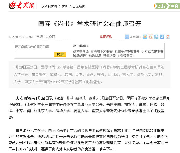 大众网:国际《尚书》学术研讨会在曲师召开