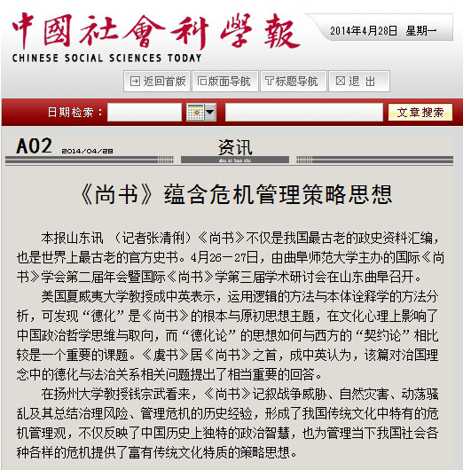 中国社会科学报:《尚书》蕴含危机管理策略思想