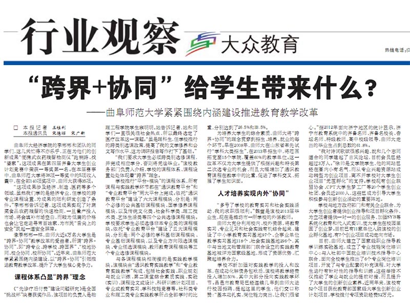 大众日报:“跨界+协同”给学生带来什么?——米兰官方网站紧紧围绕内涵建设推进教育教学改革