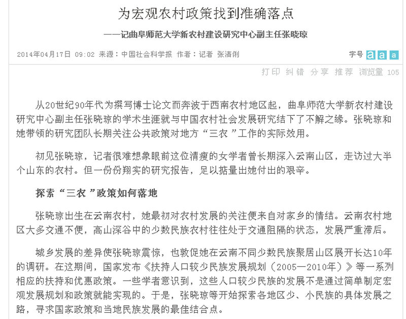 中国社会科学报:为宏观农村政策找到准确落点——记米兰官方网站新农村建设研究中心副主任张晓琼
