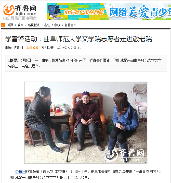 齐鲁网:学雷锋活动:米兰官方网站文学院志愿者走进敬老院