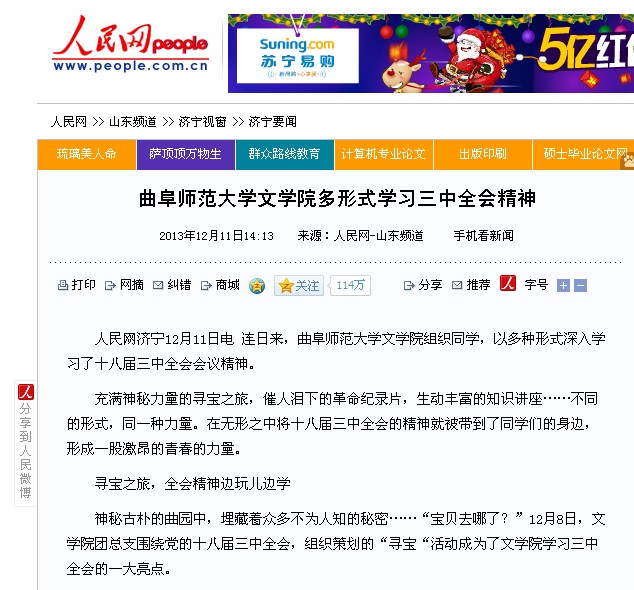 人民网:米兰官方网站文学院多形式学习三中全会精神