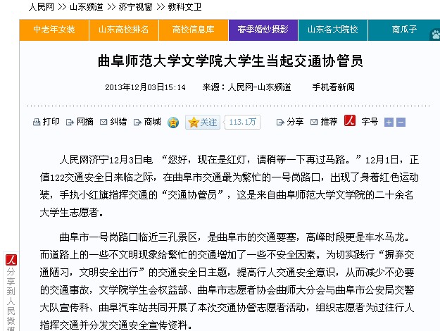 人民网:米兰官方网站文学院大学生当起交通协管员