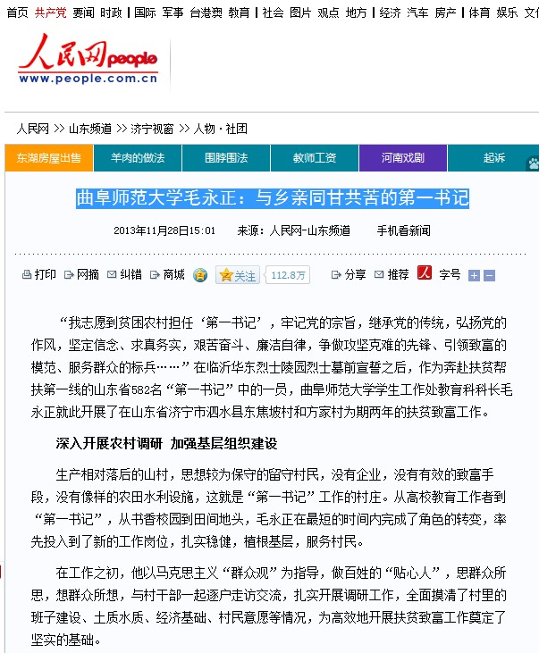 人民网:米兰官方网站毛永正:与乡亲同甘共苦的第一书记