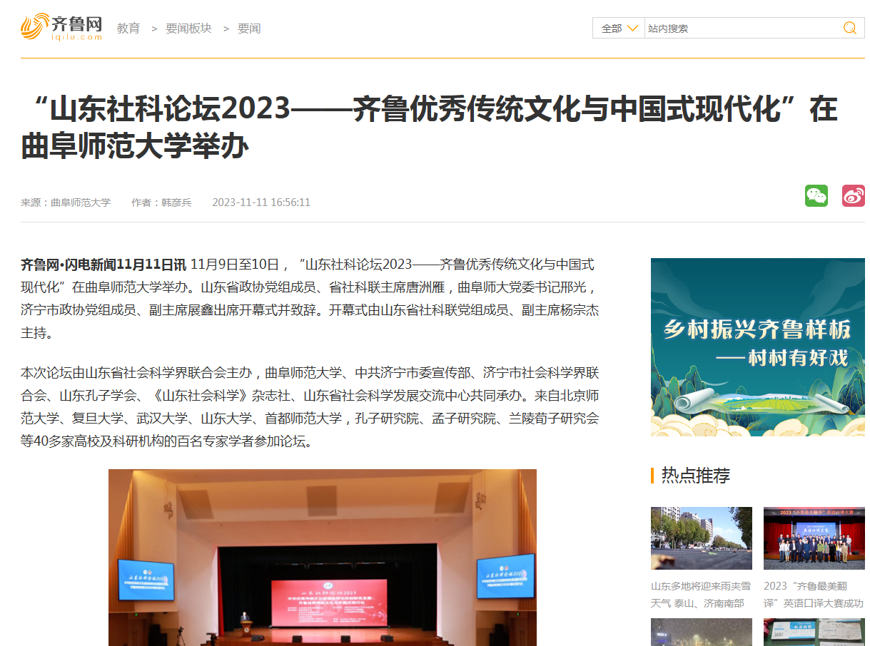 【齐鲁网】“山东社科论坛2023——齐鲁优秀传统文化与中国式现代化”在米兰官方网站举办