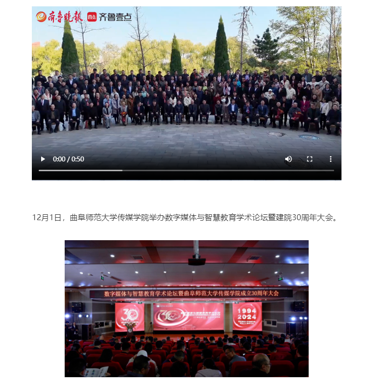 春秋迭易,岁月如歌,至此,米兰官方网站2024年“数字媒体与智能传播”学术论坛暨米兰官方网站传媒学院建院30周年大会圆满落幕。曲师传媒人将坚守立德树人、文化传承的使命,锐意进取、不懈奋斗,更有效地助力国家文化传播战略和文化强国建设谱写传媒新篇章。