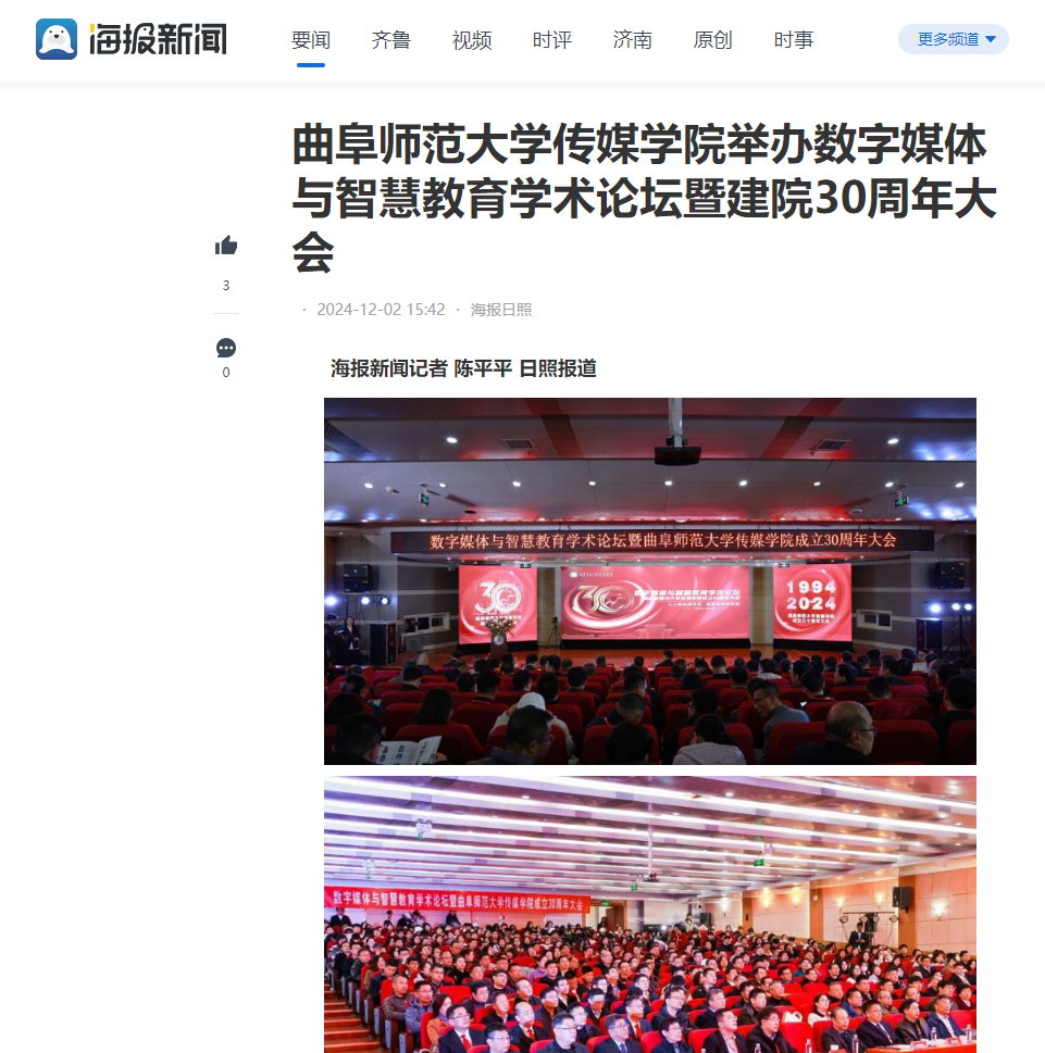 春秋迭易,岁月如歌,至此,米兰官方网站2024年“数字媒体与智能传播”学术论坛暨米兰官方网站传媒学院建院30周年大会圆满落幕。曲师传媒人将锐意进取、不懈奋斗,更有效地助力国家文化传播战略和文化强国建设谱写传媒新篇章。