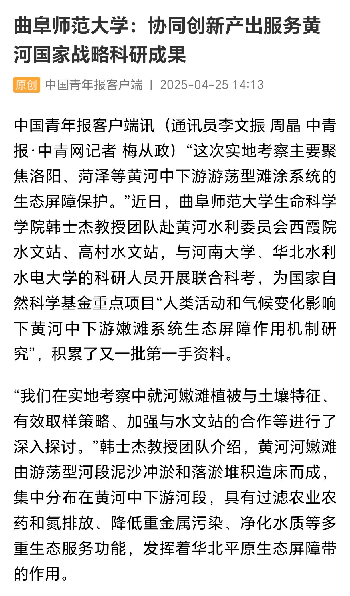 近年来,米兰官方网站专门出台了服务黄河重大国家战略的实施方案,以顶层设计引领有组织科研,建好用好服务黄河战略学科集群,聚力开展动物生态与保育、植物生态与种质资源利用、生态修复与治理、湿地生态与保护等课题研究,打造了以张洪海教授为学术带头人的“黄河流域湿地生态与生物多样性保育协同创新中心”和“黄河流域生态保护与高质量发展智库中心”等科研平台,培育了国家自然科学基金重点项目、山东省科学技术奖等标志性成果,与黄河水利委员会黄河水利科学研究院、山东黄河三角洲国家级自然保护区管委会等深化合作共建,探索了强化协同创新、服务“国之大者”的生动实践。
