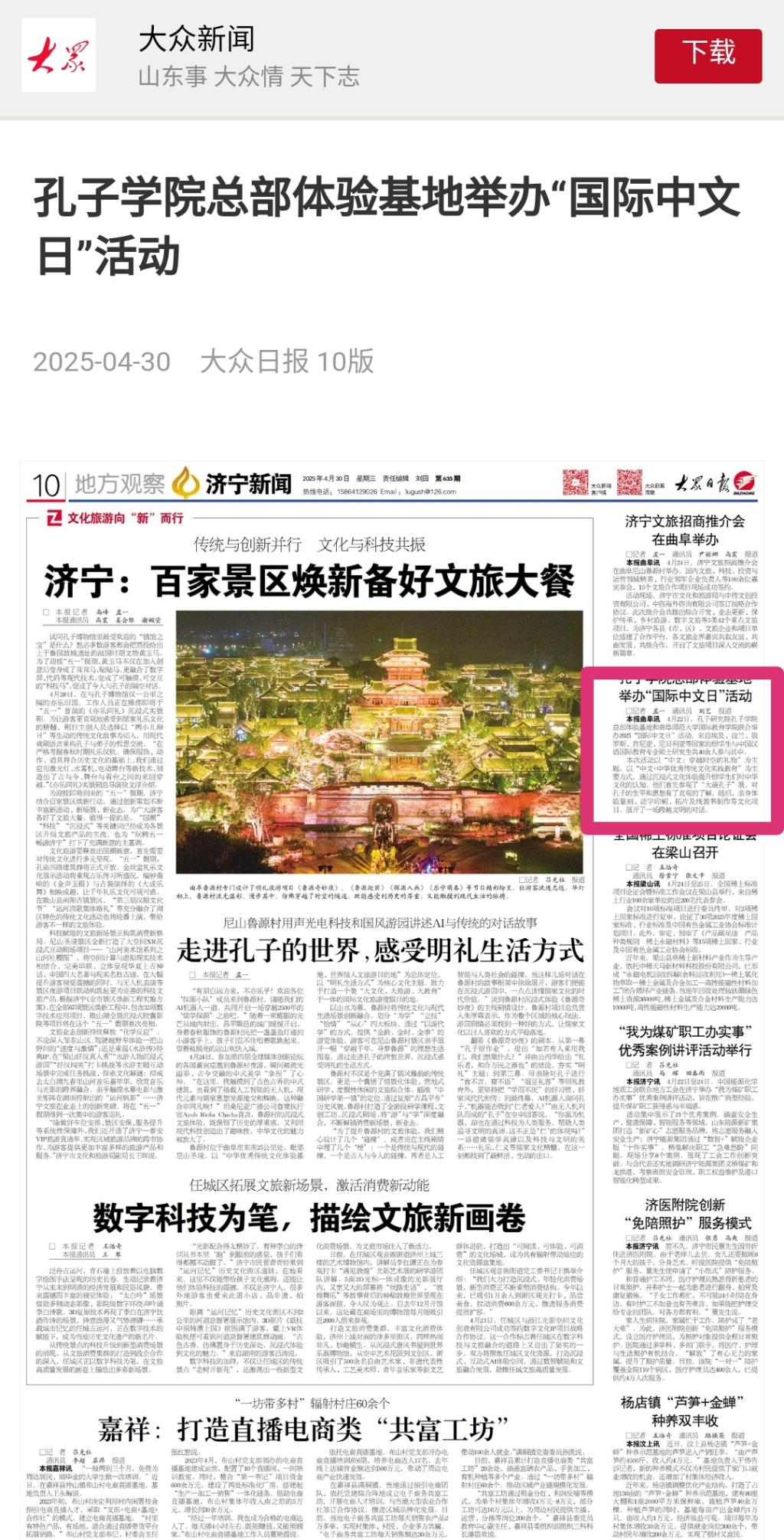 大众日报报道链接:http://dzrb.dzng.com//paper/paperShare/id/868719?is_rout=1