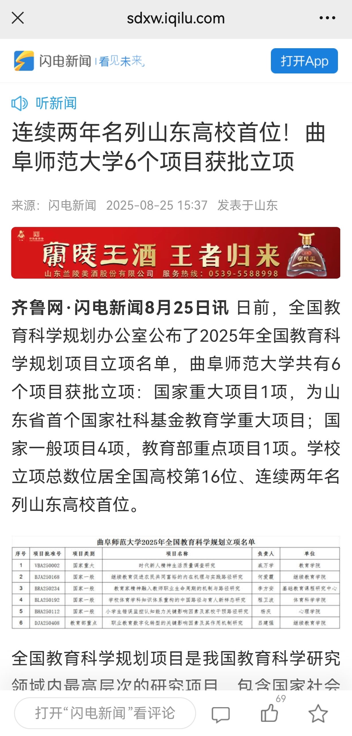 【闪电新闻】连续两年名列山东高校首位!米兰官方网站6个项目获批立项