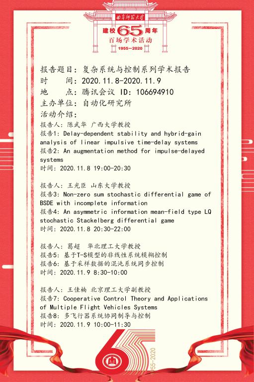 建校65周年百场学术活动-复杂系统与控制系列学术报告