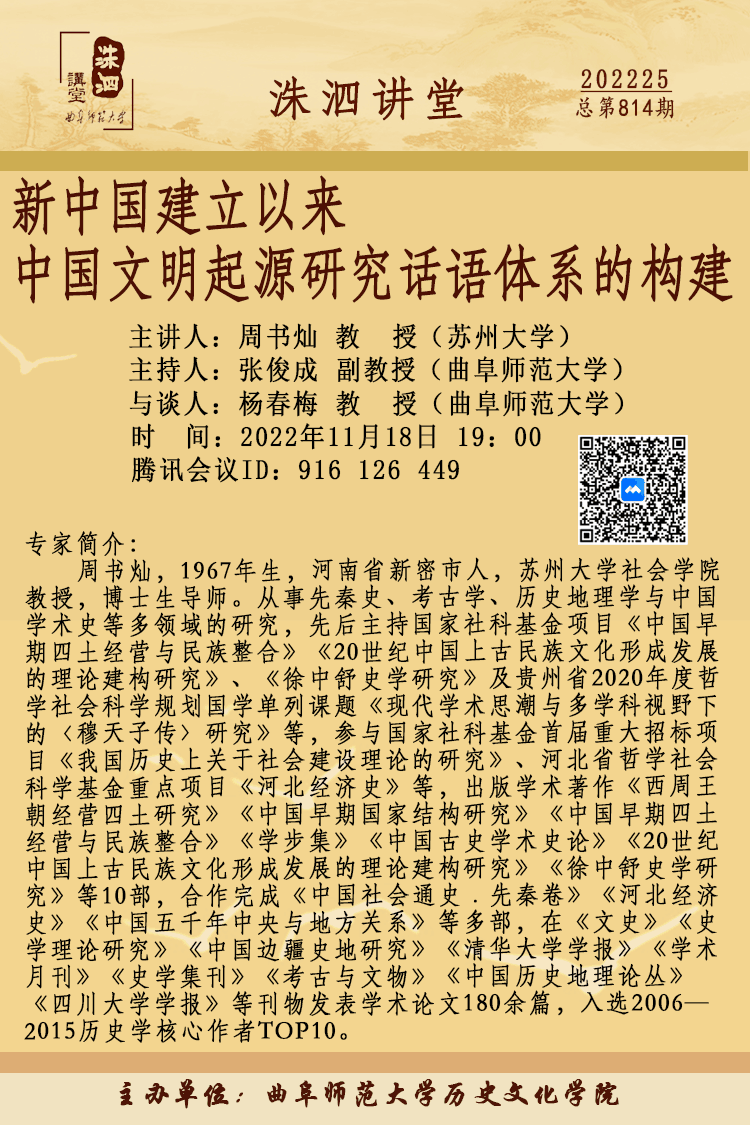 洙泗讲堂预告|周书灿:新中国建立以来中国文明起源研究话语体系的构建