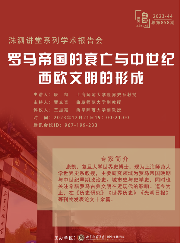 洙泗讲堂预告|康凯:罗马帝国的衰亡与中世纪西欧文明的形成