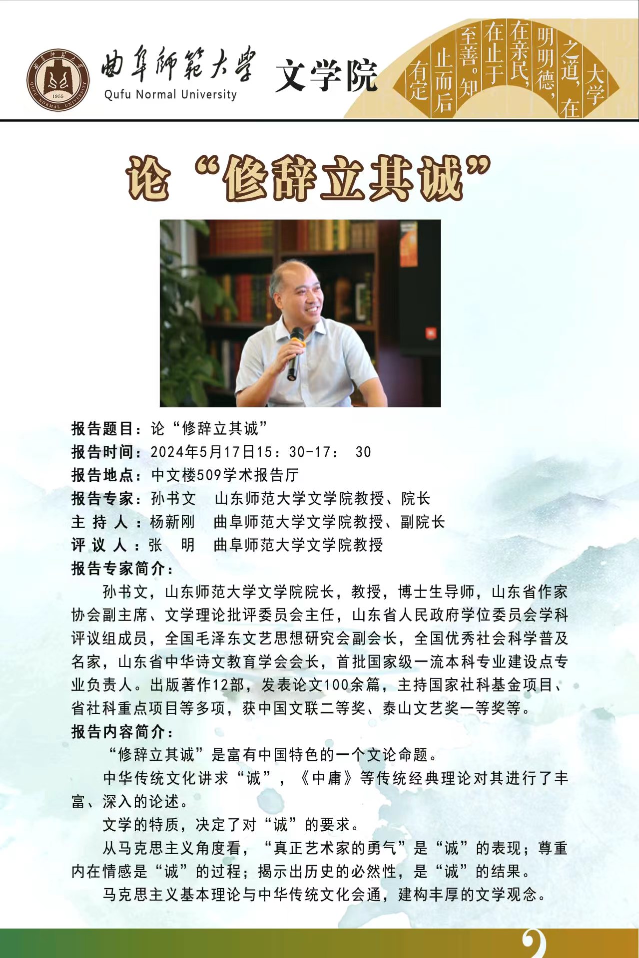 文学院学术报告预告:论“修辞立其诚”