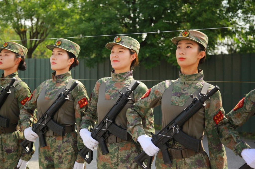 赵雨欣带训时,活脱脱一个“细节控”:开训前三天,她拿着白灰在训练场画标记,确保新生站位间距分毫不差;整理器材时,逐根检查队列标杆是否笔直,甚至试穿每双作训鞋,怕鞋底硬度影响踢正步发力。她还把当年的阅兵笔记重新梳理,“正步踢腿30厘米”“摆臂夹角90度” 等关键数据标红,教学时逐人纠正:新生军姿不标准,她轻抵后腰提醒“贴紧钢板”;有人踢正步脚尖外撇,她蹲在旁边扶着脚踝调角度,一遍遍地示范。 她常对新生说,“落地要像砸在地上一样有力”“咱们的队列要像一块整板,走出去就得有阅兵方阵的气势!”方阵越来越整齐的脚步声,就是最好的回应。