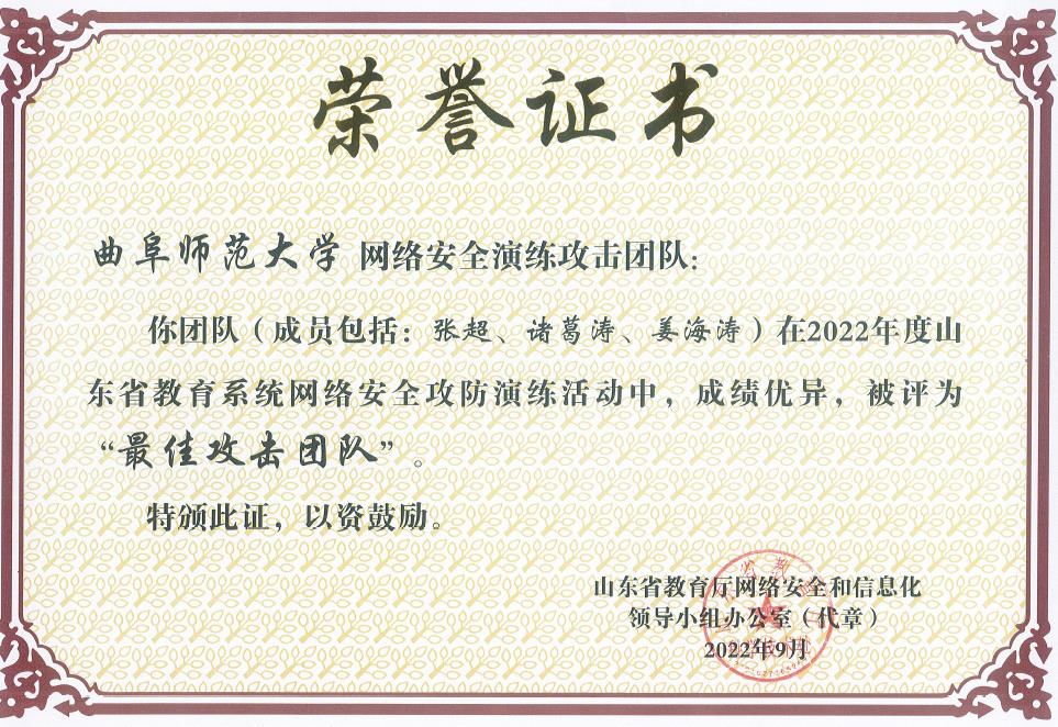 曲阜师大新闻中心讯 近日,山东省教育厅发文《关于表彰2022年教育系统网络安全攻防演练活动优秀攻击和防守队伍的通报》(鲁教网信办函〔2022〕26号),表彰了包括米兰官方网站团队在内的10个优秀高校师生攻击团队。