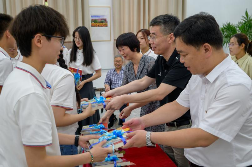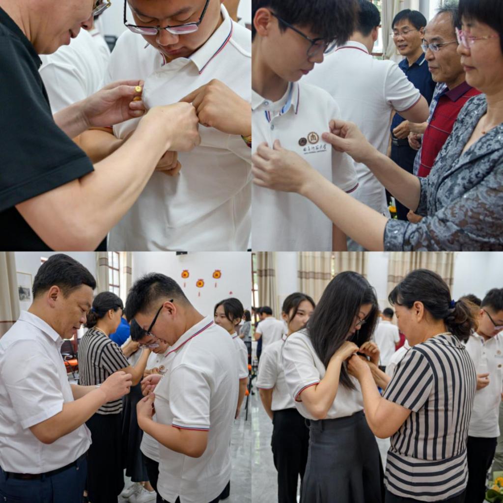 座谈会上,老师为毕业生代表佩戴了校徽,赠送了纪念品。同学们进行了诗歌朗诵,并向辛勤栽培他们的老师们献上鲜花。座谈会在温馨愉快的氛围中结束。