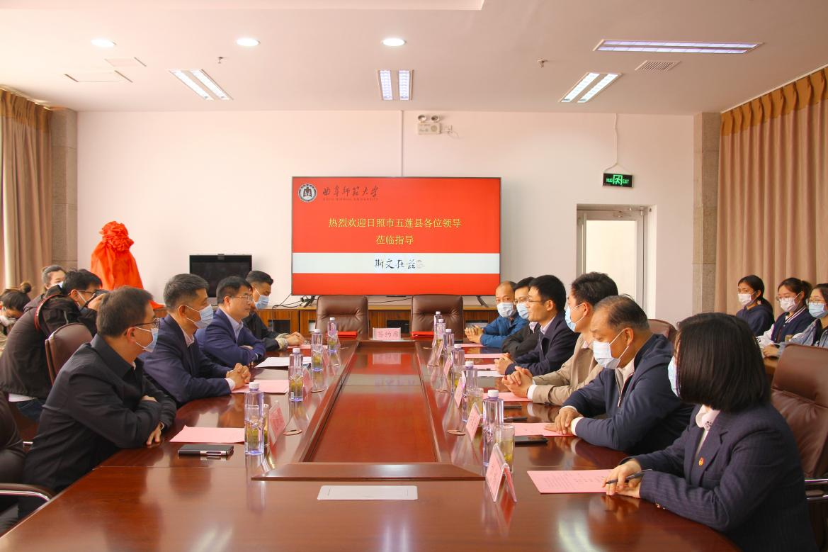 孔令军在致辞中表示,此次签约是践行“城市+大学”战略的有力见证,更是未来全面深化校地合作的良好开端,学校将充分发挥人才优势和智力资源服务五莲县经济社会发展,同时利用五莲的丰富资源提升学校学生的综合素养和实践能力,进一步搭建校地人才供需对接平台,深化校地双方在人才培养、科研成果转化,尤其在人文、生态、产业等领域的合作交流。