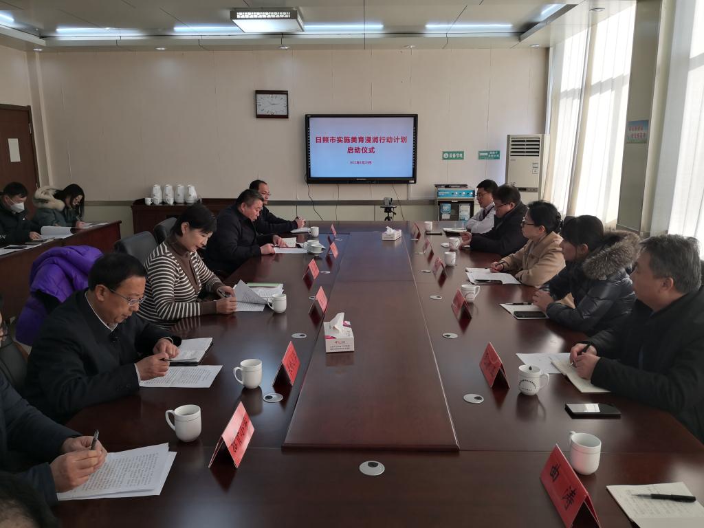 曲阜师大新闻中心讯 为全面深入了解莒县美育现状和工作需求,共同商议推进美育浸润行动。1月20日上午,学生工作处处长姜美颖,团委副书记张颖,学生工作处副处长田凯、毛永正、郑勇、曲涛赴日照市莒县教育和体育局进行工作对接。日照市教育局副局长张颖、莒县教育和体育局局长焦广良、副局长王立秋、日照市教育局体卫艺科工作人员、对口帮扶学校负责人等参加了座谈会。座谈会由莒县教育和体育局副局长王立秋主持。