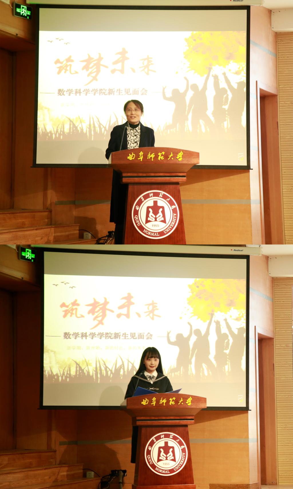 优秀青年教师代表马翠芹对数学专业课的学习方法进行了深刻阐述。她提出,进入大学学好专业知识是我们的第一要务,提高专业学习成绩,才能在未来有更好的机会和选择。大学是开放的,大学生活是多彩的,在好好学习之外,应提高自己的综合素质,积极参加学院学校组织的各项活动。随后,2018级优秀学生代表孙悦和大家一起分享了她在曲园生活、学习的点滴感悟,并祝愿2021级新生在自己的人生道路上不畏险阻、勇敢追梦。
