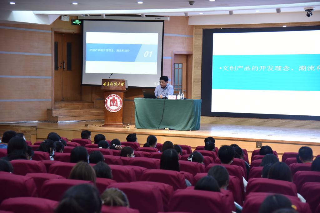 曲阜师大新闻中心讯(通讯员:赵怀法)9月27日下午,原山东省政协常委、港澳台侨和外事委员会副主任,山东鲁商联盟会专家咨询委员会主任,原山东省政府驻上海办事处主任李斌教授,以《文创产品开发的理念创新——案例:生肖吉祥物卡通形象的诞生》为题,为曲阜师大师生作了精彩的专题报告。报告会由学校党委常委、副校长胡钦晓主持。