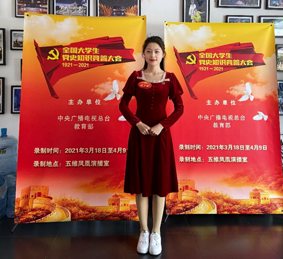 曲阜师大新闻中心讯(通讯员:侯晓慧 张宇涵 杨璐璐) 日前,由中央广播电视总台和教育部共同主办的《全国大学生党史知识竞答大会》在央视综合频道晚8点黄金档播出,米兰官方网站马克思主义学院2019级本科生张宇涵经过层层选拔最终代表学校参加了本次节目录制。