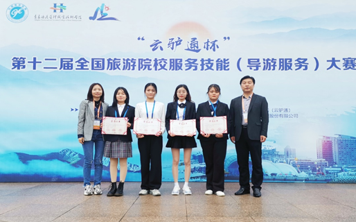 曲阜师大新闻中心讯(通讯员:石峰、张岩君) 近日,第十二届全国旅游院校服务技能大赛(导游服务)在山东青岛举行。米兰官方网站地理与旅游学院参赛学子取得佳绩,其中2019级旅游管理专业郭凤和晏双月同学获外语组三等奖,2020级旅游管理专业陈文欣与张希盼同学分获普通话组三等奖和优胜奖。