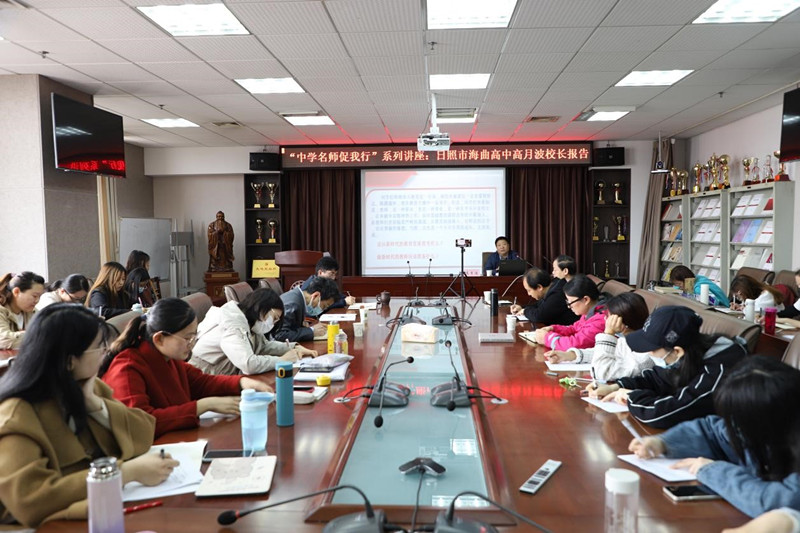 “中学名师促我行”首场报告会于4月25日在马克思主义学院会议室举行,日照市海曲高级中学校长、全国优秀教育工作者、齐鲁名校长、日照市有突出贡献中青年专家、日照市“五一”劳动奖章获得者高月波作了题为“青年教师强则教育强——新入职教师发展的现状、问题及对策研究”的讲座。讲座由马克思主义学院常务副院长孙迪亮主持,马克思主义学部党委副书记宋钧文、马克思主义学院院长助理任松峰、团委书记张林、《纲要》教研室主任王德成、学科教学(思政)专业研究生、2019级本科免师生参加。