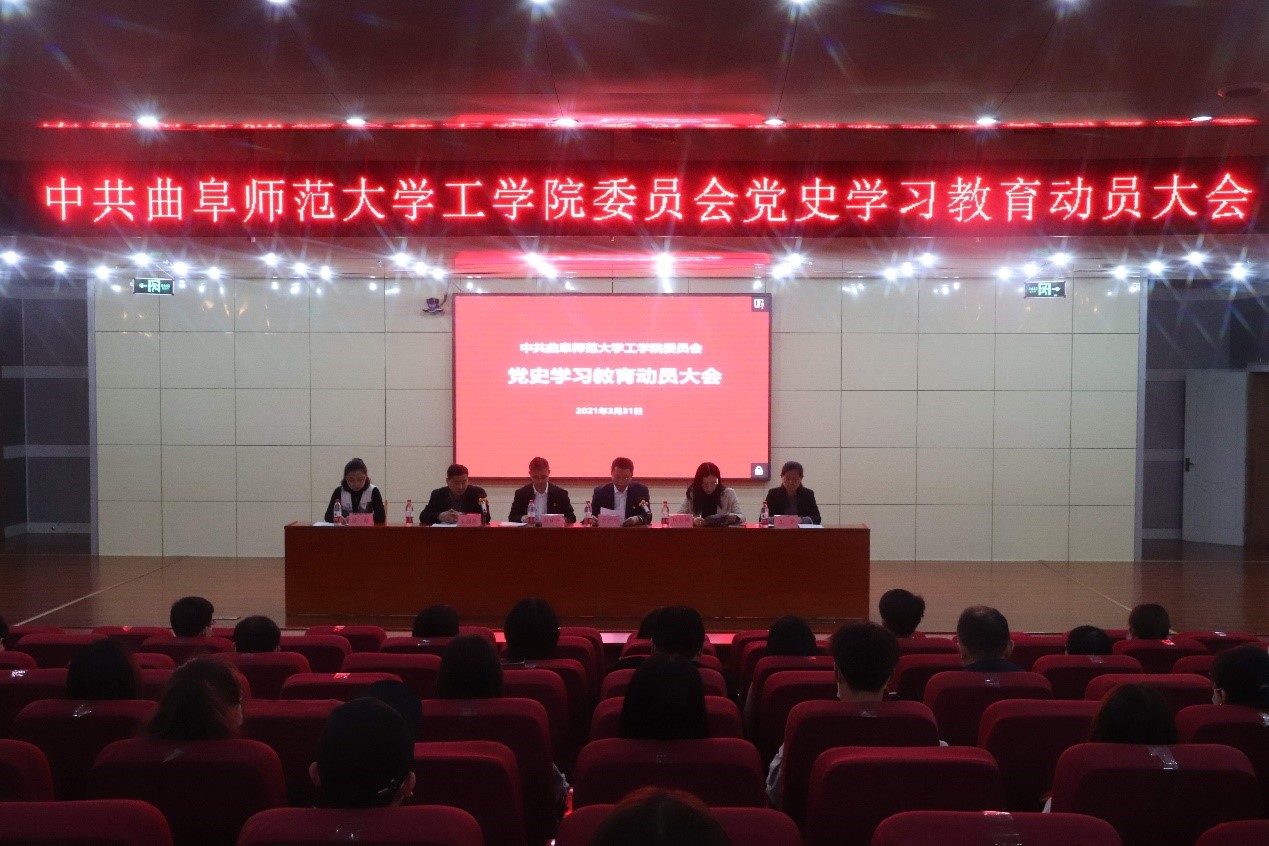 曲阜师大新闻中心讯(通讯员:张华)为深入学习贯彻习近平总书记在党史学习教育动员大会上的重要讲话精神,扎实开展党史学习教育,推动广大党员学史立身、以史为镜、知史奋进,3月31日下午,工学院在日照校区图书馆报告厅召开党史学习教育动员大会。工学院党委书记谢仕兴、学院党委委员、党支部书记、全体党员和部分入党积极分子参会,学院党委委员宗广灯主持会议。