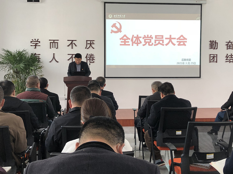 后勤党委书记冀贞友首先代表后勤党委做2020年后勤党委工作报告,并对2021年工作进行了部署。在随后进行的党史学习教育动员大会上,冀贞友指出,要根据中央、山东省委文件精神和学校党委实施方案要求,紧密结合工作实际,高标准高质量推进后勤党委党史学习教育,全体党员要深入贯彻学习习近平总书记在党史学习教育动员大会上的重要讲话精神,充分认识开展党史学习教育的重大意义,明确党史学习教育的目标要求,全面把握学习内容,做好党史学习教育的学习,严格遵照总书记提出的要求,确保学习教育向正确的方向前进,推动学习教育取得更好的效果。