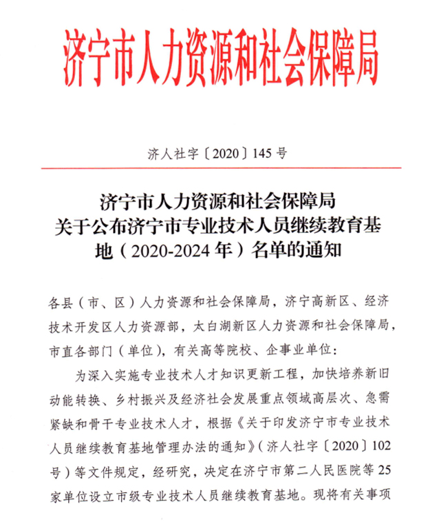 曲阜师大新闻中心讯(通讯员:邢春雷 近日,《济宁市人力资源和社会保障局关于公布济宁市专业技术人员继续教育基地( 2020-2024年)名单的通知》(济人社字[2020]145号)已经下发,曲阜师大继续教育学院获批济宁市专业技术人员继续教育基地。