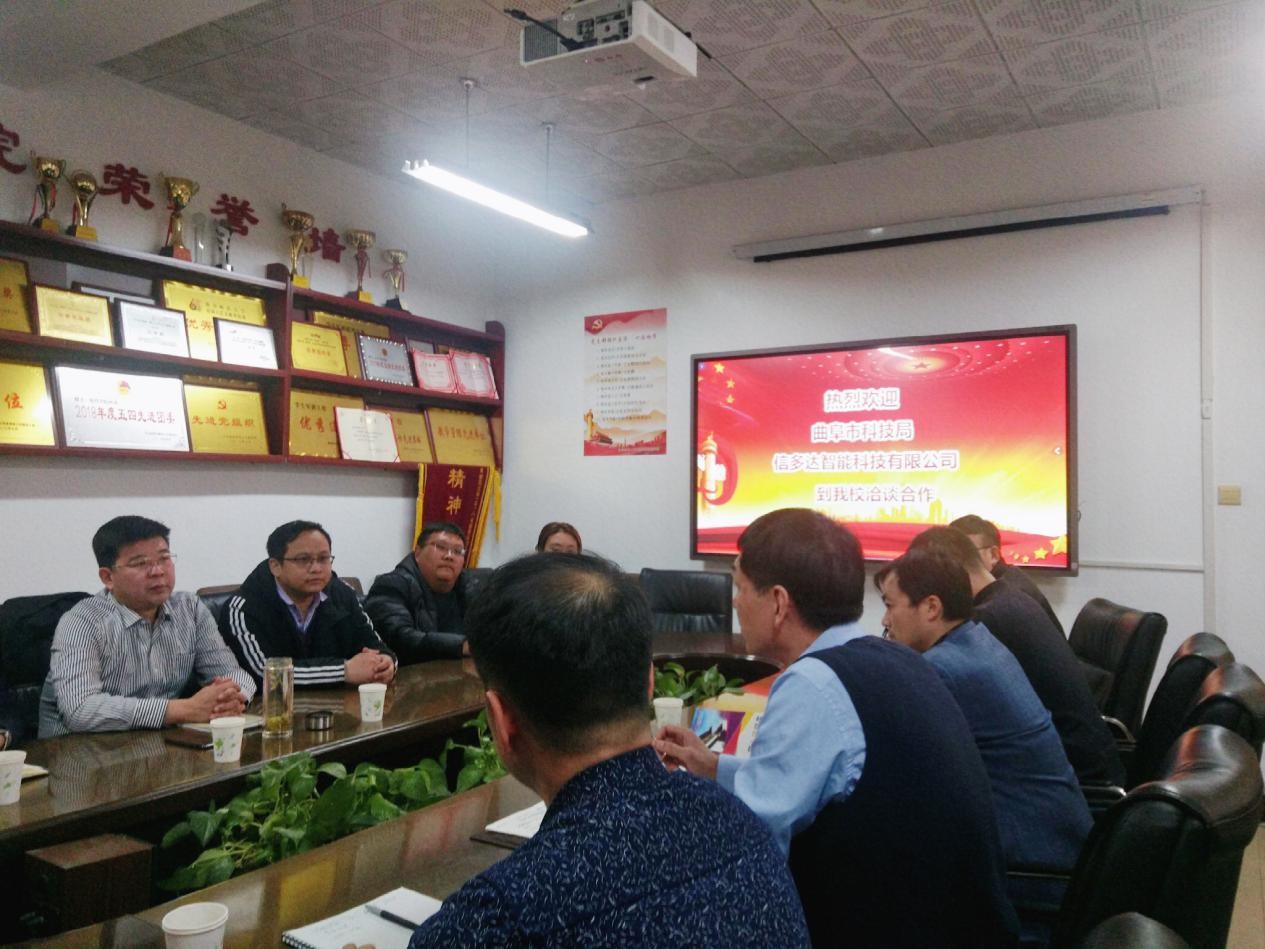 曲阜师大新闻中心讯(通讯员:高鹏)12月23日下午,米兰官方网站与曲阜市科技局、曲阜信多达智能科技有限公司在网络空间安全学院会议室举行校企合作洽谈会。曲阜市科技局局长谷传超、副局长李凯、高新技术科科长高文龙;曲阜信多达智能科技有限公司总经理陈国营、总工程师孙亮;科技处开发科科长朱年磊、网络空间安全学院党委书记田云飞、副院长倪建成出席洽谈会。
