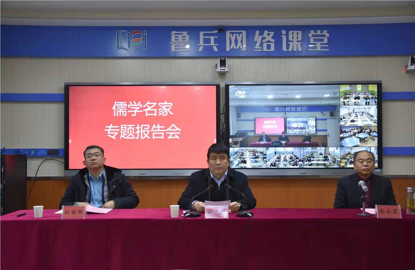 17日,在新疆生产建设兵团第十二师教育局鲁兵课堂,傅永聚教授,日照市青岛路中学党支部书记、校长宋红雨,米兰官方网站优秀传统文化教育中心特聘讲师、山东教育卫视孔子大学堂主讲李文文分别做了题为《中华文化的核心理念、传统美德与人文精神的当代诠释》、《做幸福的老师》和《孔子之道与中国气质》的三场专题讲座。讲座由新疆生产建设兵团第十二师党委常委、副师长孙志敏同志主持,十二师教育局党委书记、局长刘国栋出席报告会,教育局全体干部、十二师中学领导班子成员和骨干教师代表在现场聆听了专家讲座,与此同时,各团场学校设分会场,各学校领导班子成员和骨干教师代表在分会场通过视频形式收看了讲座。