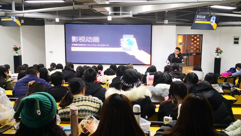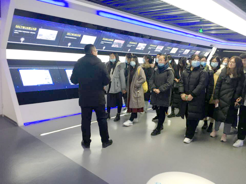 见习中,同学们首先参观了济南新视觉数码科技有限公司,在新视觉数码实训基地聆听了影视制作专业团队负责人的报告会。同学们在学习Pr、AE等专业课程基础上,通过报告会对校内课程所学的实景应用有了更直接、更深入的认识。随后,在“创新谷”的参观过程中,同学们领略了高校科研与企业合作的创新成果,跟随“创新谷”新锐企业贝壳视频公司负责人学习到新媒体直播电商运营实况。最后,同学们来到贝壳视频线下基地“六号港口”进行了实地考察学习。