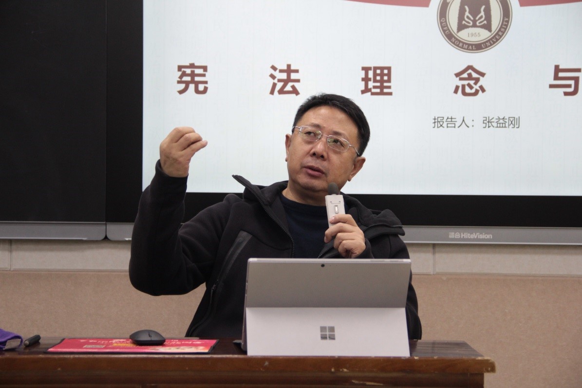 12月3日晚,法学院举办“宪法理念与实践”主题报告会,由法学院院长张益刚教授担任报告人,法学院研究生参加。