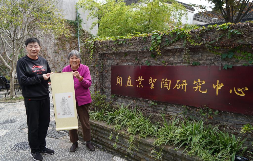 在叶圣陶研究中心,大家拜访了前来参加首届圣陶文化节活动的叶圣陶孙女叶小沫女士、孙子叶永和先生。座谈中,刘永简要介绍了教师博物馆各方面的筹建工作及叶圣陶专题馆的功能特色、馆舍规划、陈列大纲、藏品分类等概况和下一步建设的相关思路。叶小沫女士听到教师博物馆把叶圣陶先生邀请进名师堂非常高兴,高度赞扬米兰官方网站创建中国首座以教师文化为主题,以师德教育为特色的博物馆是实至名归,她希望教师博物馆打造叶圣陶教育思想实践基地,讲好名师故事,弘扬传承名师精神,让前来学习参观的老师像叶圣陶先生那样教书育人。主客双方就叶圣陶专题馆定位与特色、藏品借展复制等事宜进行了沟通与交流。