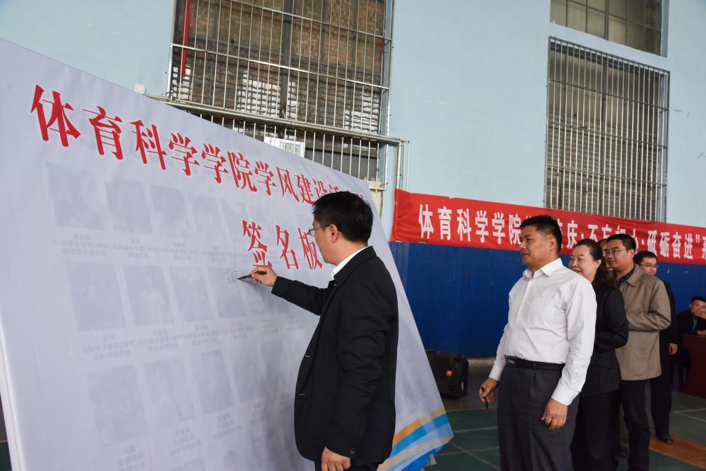 会议伊始,副校长胡钦晓代对体育科学学院学风建设活动月的启动表示祝贺。他表示,学风建设是学校常抓不懈的重要工作,是一项系统工程,需要全体师生共同参与。希望同学们齐心协力、坚持不懈,在已有成绩的基础上,扎实推进学风建设,将学风建设落实到学院育人工作的各个层面,渗透到人才培养的各个环节,探索建立学风建设的长效机制,努力营造一个良好的育人治学环境。