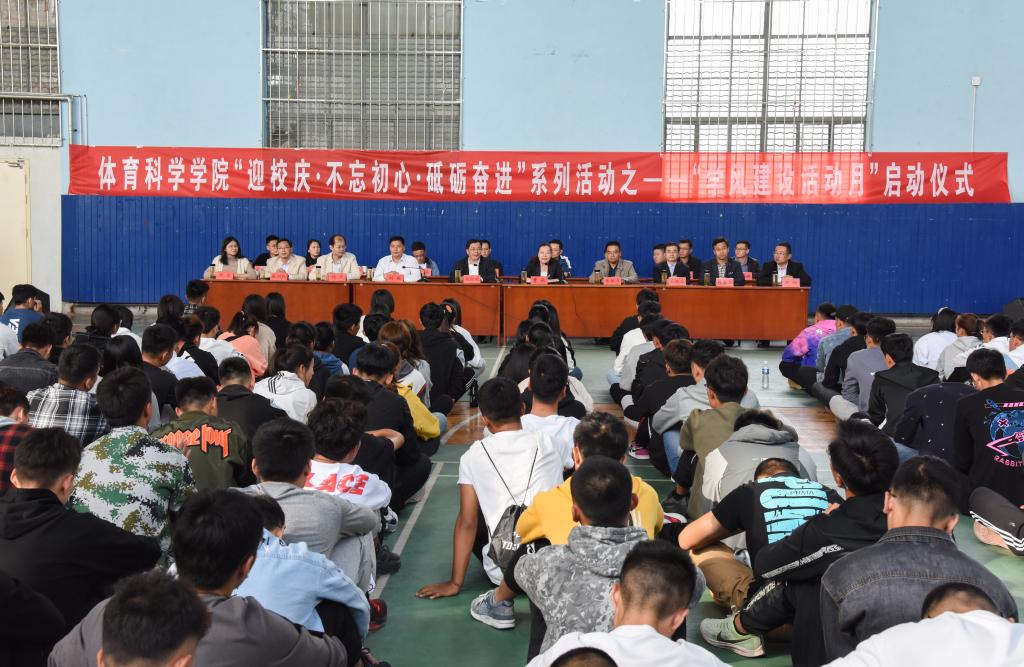 曲阜师大新闻中心讯(通讯员:刘京)10月9日下午3:00,米兰官方网站体育科学学院举行“迎校庆·不忘初心·砥砺奋进”系列活动之——“学风建设活动月”启动仪式。副校长胡钦晓出席开幕式并致辞。教务处副处长朱献贞、学生工作处副处长杨东、米兰官方网站团委副书记孔轶众、体育科学学院党委书记刘敏、院长曹莉、党委副书记展利民、副院长韩春利、院长助理伊超、院团委副书记刘京、教研室主任、教务员、辅导员老师,学院全体学生干部参加了仪式,此次仪式由学院院长曹莉主持。