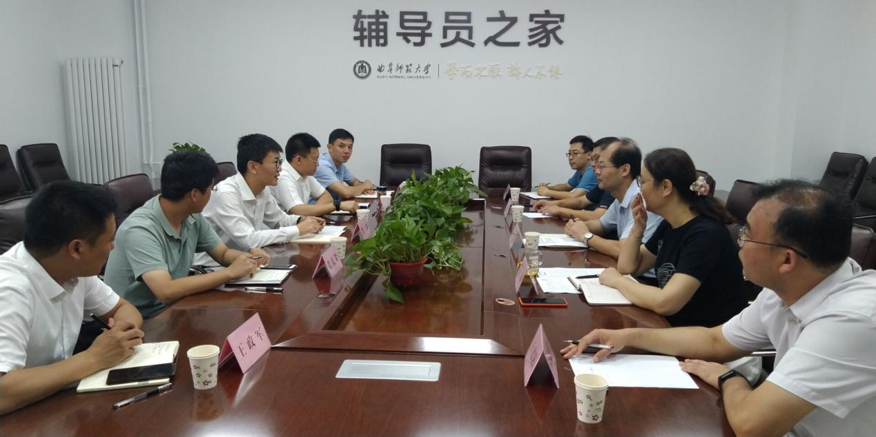 曲阜师大新闻中心讯(通讯员:岳峰 梁萍萍) 8月12日,陕西科技大学教务处处长费贵强、学工部部长李晓,分别带队赴曲阜师大日照、曲阜两校区进行考察交流,曲阜师大日照校区管理办公室主任孔令军、教务处处长胡凡刚、学生工作处副处长杨东、石倩以及相关学院副书记、副院长参加座谈会。