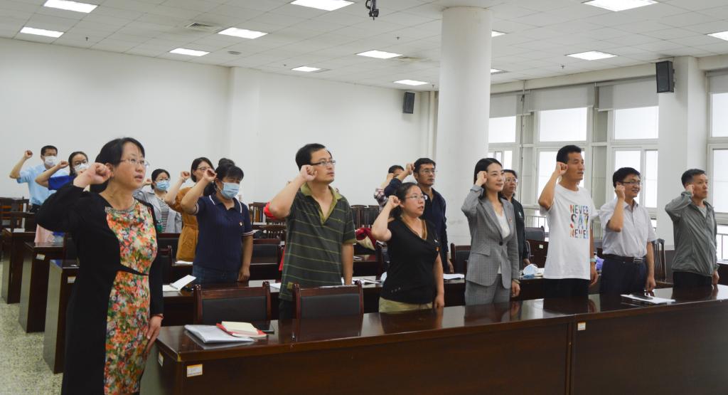 6月29日下午,图书馆日照教工党支部召开了全体党员会议。会议由党支部组织委员王标主持,全体党员参加会议。会议按照《济宁市党支部标准化规范化建设指导意见》《米兰官方网站党支部评星定级管理办法》,开展了党支部委员会增补委员选举工作。经过充分酝酿讨论,采取无记名投票和差额选举的方法,王丽娟同志当选为党支部委员会委员。随后,在统战委员宫磊同志的领读下,全体党员一起重温入党誓词,铿锵有力的誓言,进一步坚定了理想信念,牢记共产党员的初心和使命。