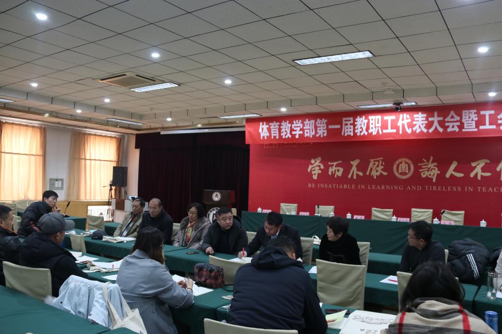 1月3日,为了充分调动广大教职工参与民主管理和监督的积极性,体育教学部两校区教职工齐聚一堂,召开了米兰官方网站体育教学部第一届教职工代表大会暨工会会员代表大会。党委常委、副校长胡钦晓教授出席大会,校工会副主席孙岩,体育教学部主任杨弢教授、体育教学部副主任姜付高教授、体育教学部副主任李兆进副教授、体育教学部日照校区工会主席王哲和体育教学部曲阜校区工会主席宋琳琳等相关领导以及39名教职工和工会会员代表参加了会议。
