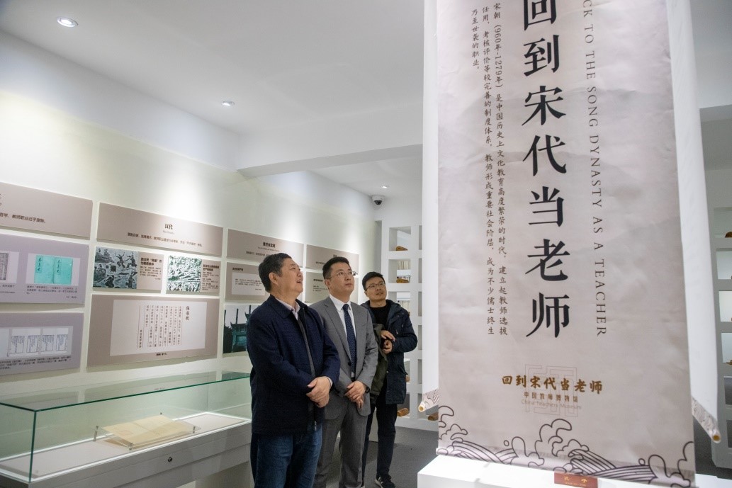 在“教师鼻祖”展区,张民选边听取讲解,边不时询问展览理念,他表示,中国教师博物馆“民族文化记忆、教育历史遗产、教师精神家园”定位高、准、实,有助于参观者追溯师道之源,从中感悟历久弥新的教育智慧,以此进一步增强文化自信。