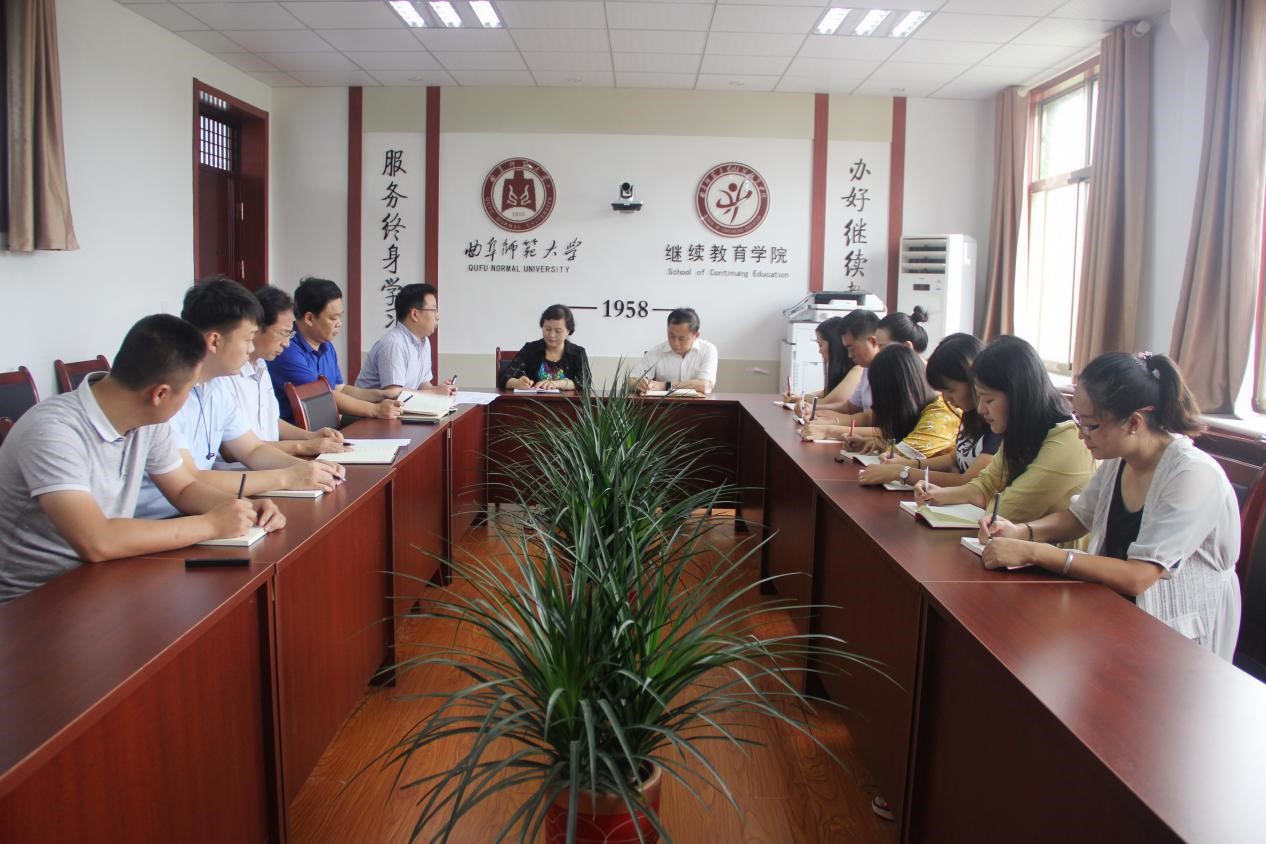 8月27日上午,我校继续教育学院联合山东一创众望教育科技有限公司曲阜项目部,召开校企合作联合办学工作推进会。学院党总支书记茌淑君、院长马秀峰、副院长邢春雷、副院长晏逾、自考培训部部长杨来舜,以及山东一创众望教育科技有限公司曲阜项目部主任吕桐月等9名职员参加了会议。