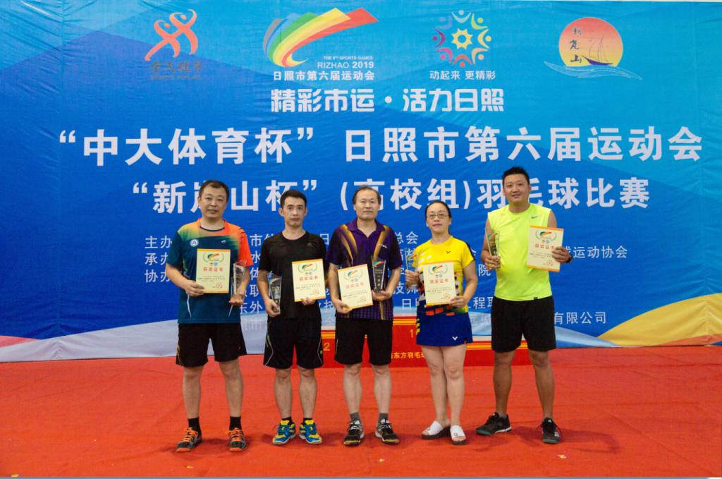 8月28日,日照市第六届运动会(高校组)羽毛球比赛在山东水利职业学院体育馆落下帷幕。我校教职工代表队积极备战、全力参赛,荣获团体项目冠军,女子单打(40岁以上组)冠军、男子单打(40岁以下组)冠军、男子单打(40岁以上组)亚军、男子单打(40岁以下组)亚军等优异成绩。